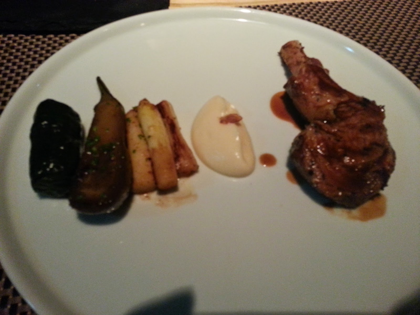 돼지 기름을 입힌 송어 훈제요리인데 접시도 인상적이고 맛도 끝내줬다. 훈제로 끝까지 익힌게 아니라서 회 같기도 하고 탱글탱글 했다. 접시도 신기함. 한입만 먹어야 하는게 아쉬웠다.